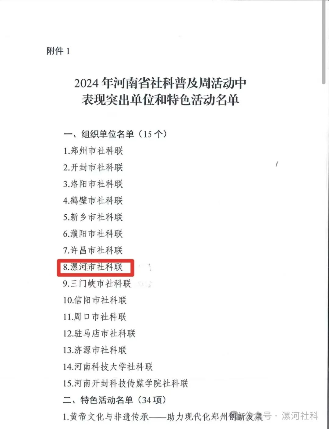 2 024年河南省社科普及周活動(dòng)表現(xiàn)突出組織單位(1個(gè)):