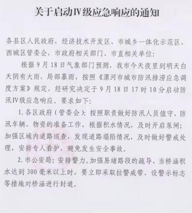 緊急通知!漯河啟動防汛二級響應(yīng)!