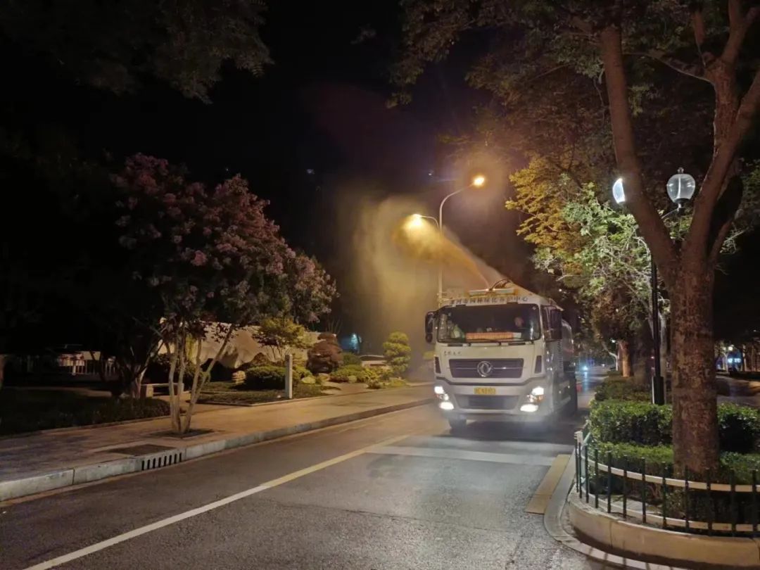 屆時(shí)將采用高壓霧炮車對(duì)行道樹、喬灌木、綠籬等綠化植物噴灑消殺藥物。