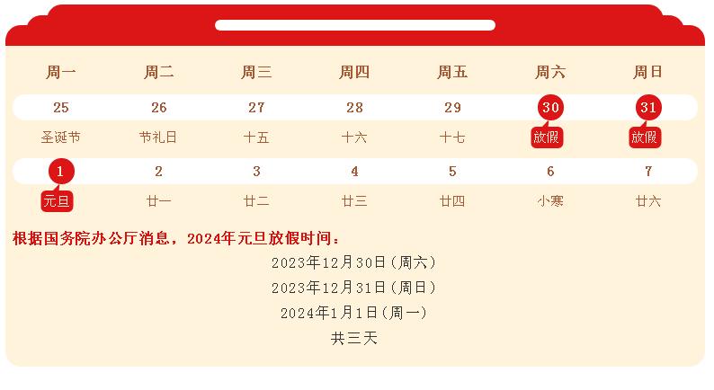 根據(jù)國務(wù)院辦公廳消息,2024年元旦放假時(shí)間: