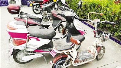 四輛被盜的電動(dòng)車。 本報(bào)記者 王 輝 攝
