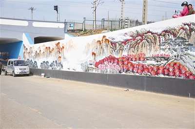 (記者 齊 放 實(shí) 習(xí) 生 李博昊)崇山峻嶺,漫山紅遍,大好河山盡收眼底;藍(lán)天白云,賞心悅目……昔日單調(diào)的涵洞有了“色彩”。3月25日下午,記者在郾城區(qū)龍城鎮(zhèn)十五里店村通往仲李村的孟平鐵路涵洞處,看到多名施工人員正在美化涵洞。