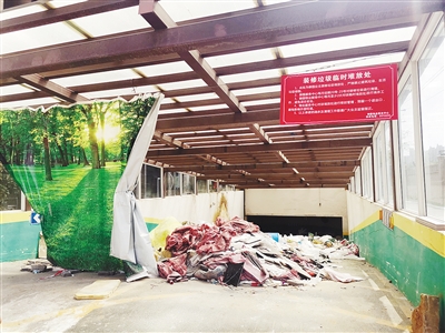 8月10日上午,記者來(lái)到陳先生所在小區(qū),發(fā)現(xiàn)位于東南角的停車場(chǎng)入口現(xiàn)已廢棄,被物業(yè)設(shè)置為裝修垃圾堆放處,堆滿了大量裝修垃圾,上方的標(biāo)志牌上寫著:每月20日至25日對(duì)裝修垃圾進(jìn)行清理(如圖)。