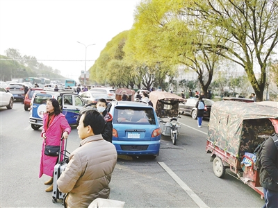 12月4日下午,漯河五高門前道路擁堵。本報(bào)記者 姚曉曉 攝