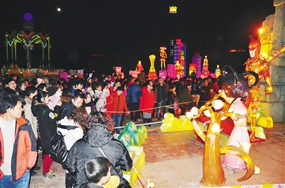 正月十五日晚上,夜幕降臨后,家家戶(hù)戶(hù)大門(mén)口、街頭巷尾、樹(shù)梢、河岸、池塘邊,都掛上或擺放各式各樣的花燈,處處燈火通明,五光十色,美不勝收。孩子們提著燈籠走在街上,歡聲笑語(yǔ)傳遍千家萬(wàn)戶(hù)。