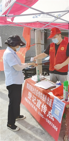 (記者 姚曉曉)“您要去哪棟樓?先出示下健康碼,然后測(cè)量體溫、登記信息。”8月17日下午,在順河街街道戲樓后街社區(qū)93號(hào)院門口,市生態(tài)環(huán)境局兩名工作人員正在對(duì)進(jìn)入小區(qū)的人員進(jìn)行登記。