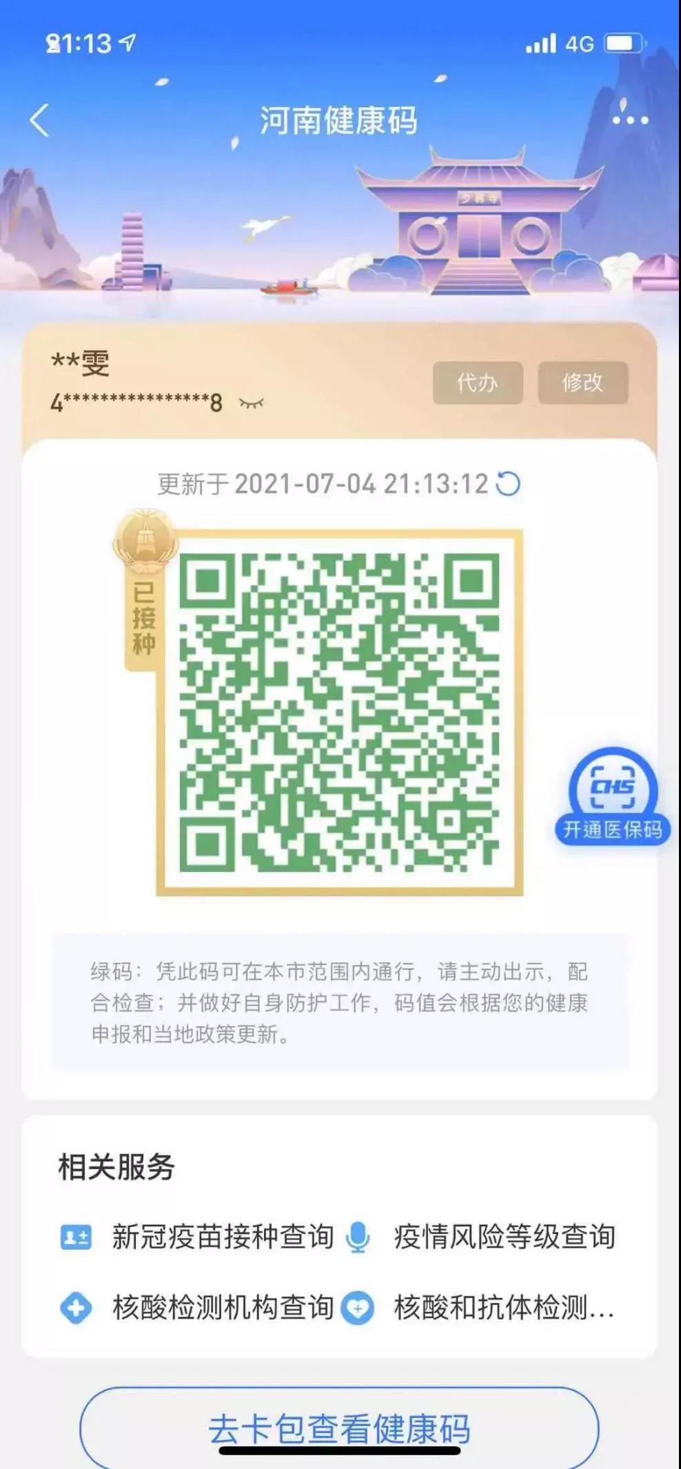 點擊金色健康碼-相關(guān)服務(wù)中的