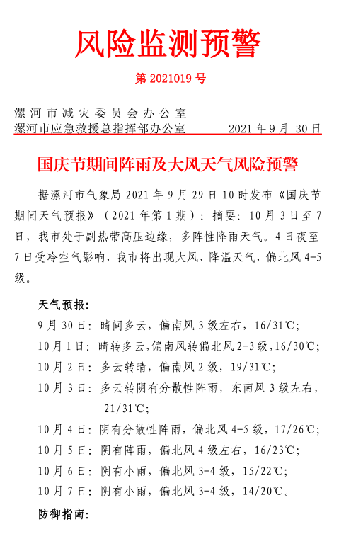 風險預警!漯河國慶假期雨雨雨......