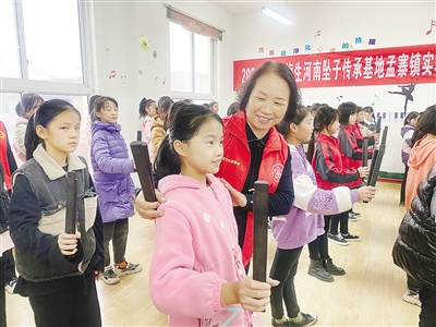 康莊文化合作社的志愿者在舞陽(yáng)縣孟寨實(shí)驗(yàn)學(xué)校開展河南墜子教學(xué)
