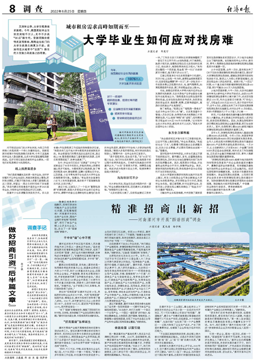 引來(lái)一家企業(yè),落地一組項(xiàng)目,成就一個(gè)鏈條。“圖譜招商”在漯河開(kāi)花結(jié)果,為地方經(jīng)濟(jì)發(fā)展注入了新的活力。“漯河過(guò)往的輝煌靠的是開(kāi)放招商,未來(lái)的發(fā)展仍離不開(kāi)它。我們將持續(xù)用好‘圖譜招商’,并形成服務(wù)項(xiàng)目落地的標(biāo)準(zhǔn)化流程圖,確保招引來(lái)的企業(yè)能夠在漯河快速落地生根、茁壯成長(zhǎng)。”漯河市委書(shū)記劉尚進(jìn)說(shuō)。
