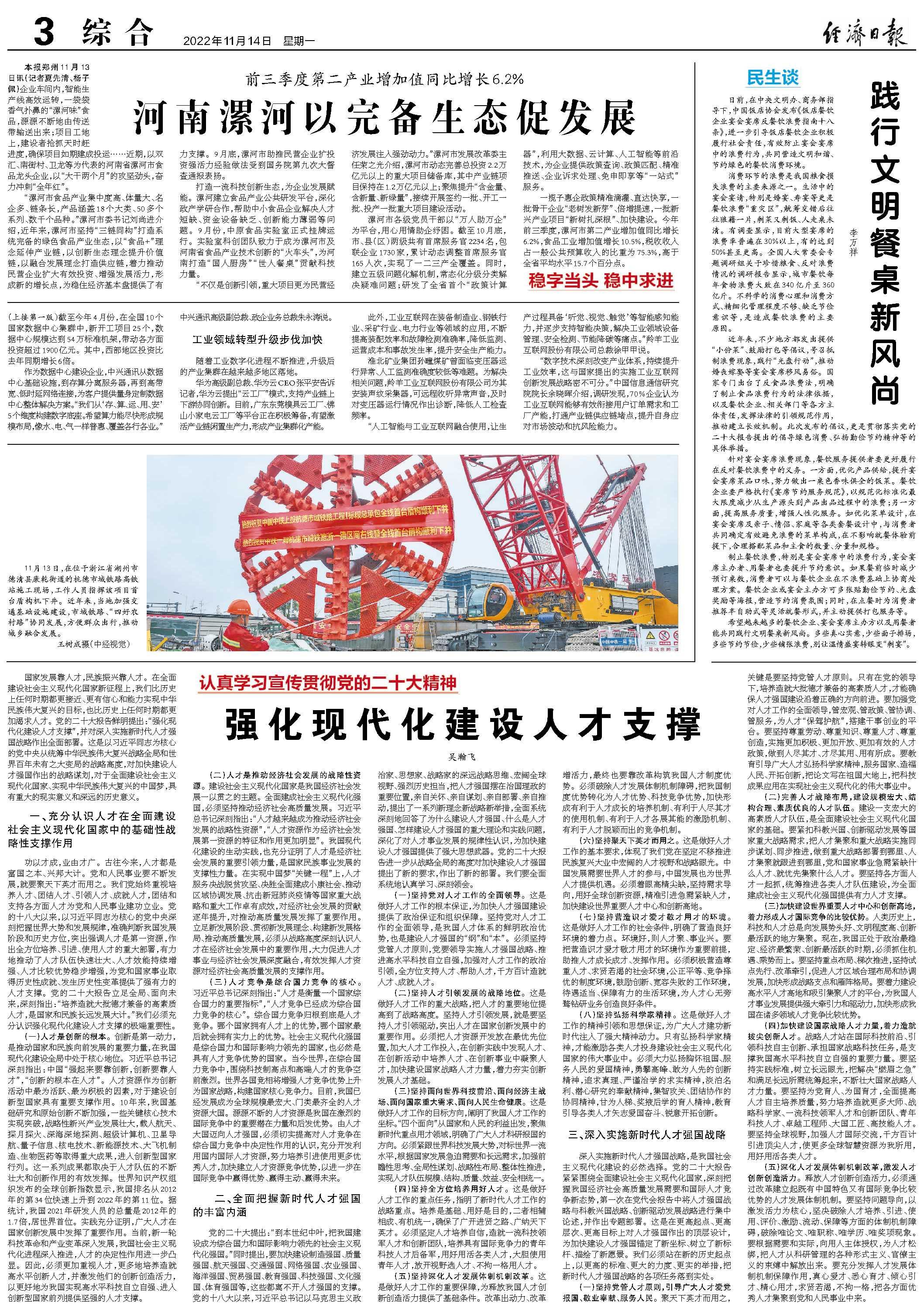 一攬子惠企政策精準滴灌、直達快享,一批骨干企業(yè)“老樹發(fā)新芽”、倍增提速,一批新興產(chǎn)業(yè)項目“新樹扎深根”、加快建設。今年前三季度,漯河市第二產(chǎn)業(yè)增加值同比增長6.2%,食品工業(yè)增加值增長10.5%,稅收收入占一般公共預算收入的比重為75.3%,高于全省平均水平15.7個百分點。