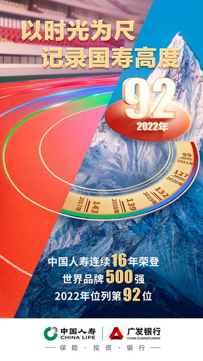 近日,由世界品牌實驗室獨家編制的2022年世界品牌500強榜單揭曉,中國人壽連續(xù)16年入選,2022年位列第92位,名次較去年上升7位,連續(xù)兩年進入前百強,持續(xù)領(lǐng)跑中國金融保險企業(yè)。