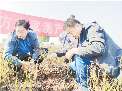 專家對(duì)史渡口村的“漯花20”花生百畝示范方進(jìn)行測(cè)產(chǎn)。