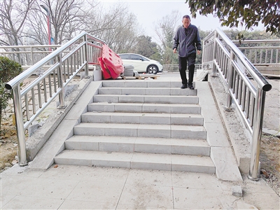 看到工人正在忙碌,一名經(jīng)過的市民說:“我經(jīng)常從橋南頭來這兒的松樹林和朋友一起健身。之前橋上只有往東的出口,開口很小,臺階上又有欄桿,人和自行車不容易通過?,F(xiàn)在拓寬后,走起來就順暢多了!”