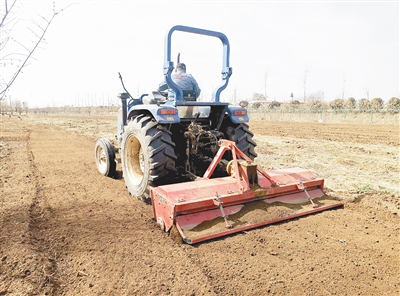 3月26日,臨潁縣皇帝廟鄉(xiāng)王老莊村村民正在使用拖拉機耕田,準備種植蔬菜。