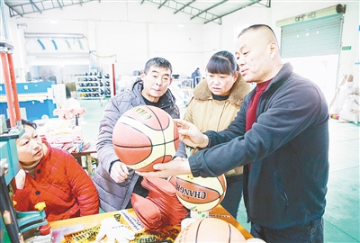 “我們正在抓緊時間完成訂單任務(wù)。”白可告訴記者,目前生產(chǎn)的是來自天津的三萬個籃球生產(chǎn)訂單。工人們加班加點,每天能生產(chǎn)2000個。