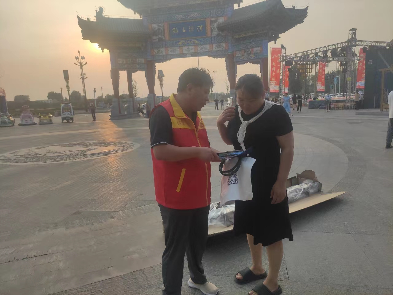 端午節(jié),漯灣古鎮(zhèn)志愿者在文明服務。