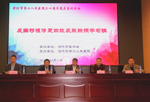 10月16日上午由市醫(yī)學(xué)會(huì)主辦、漯河市二院承辦的市級(jí)繼續(xù)教育項(xiàng)目“皮瓣移植修復(fù)四肢皮膚缺損學(xué)習(xí)班”在市二院成功舉辦。會(huì)議邀請(qǐng)上海華山醫(yī)院手外科陳德松教授和河南省顯微外科研究所袁正江教授蒞臨并作了精彩授課。