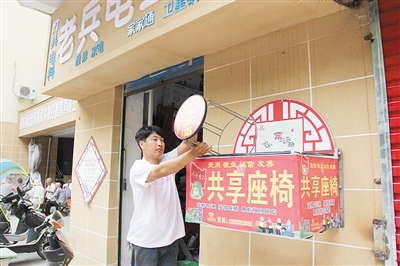 從共享單車到共享電車,再到現(xiàn)在的共享汽車。共享已經(jīng)成為當(dāng)今一個(gè)比較熱門的詞語。近日,在市區(qū)湘江路一小家電維修店門前,有一處免費(fèi)的“共享座椅”吸引了不少人的注意。