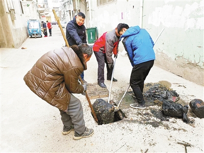 “這個家屬院是老舊小區(qū),平時沒有人管理維護。家屬院的基礎設施陳舊,下水道老化淤積了大量污垢,堵塞嚴重,影響居民生活。臨近春節(jié),居民對此束手無策,只能求助社區(qū)。”郾城區(qū)沙北街道昆侖社區(qū)第六網(wǎng)格網(wǎng)格長王曉云說,接到居民的反映后,她便到現(xiàn)場勘察,發(fā)現(xiàn)家屬院里12個沉淀池全部堵塞了。