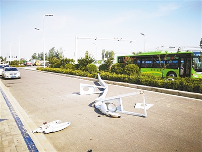 (文/圖 記者 楊 光 實(shí)習(xí)生 李 潘)7月2日晚上,在市區(qū)龍江路與白云山路交叉口附近,一根路燈桿被連根撞斷,倒在人行道上,給通行帶來不便。
