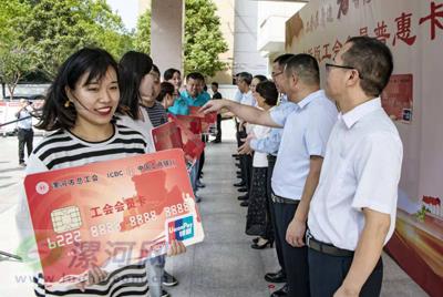2019年9月9日,漯河市總工會(huì)攜手中國(guó)工商銀行漯河分行、鄭州銀行漯河分行、漯河市公交集團(tuán)等單位共同舉行新版工會(huì)普惠卡啟動(dòng)儀式。漯河市人大副主任、市總工會(huì)主席陳平;省工行王愛(ài)軍專家、楊景勝總經(jīng)理、工行漯河分行王齊鋒行長(zhǎng)、鄧超副行長(zhǎng);鄭州銀行漯河分行韓寶平行長(zhǎng);各縣區(qū)總工會(huì)分管保障及工會(huì)惠普卡業(yè)務(wù)的分管主席、部長(zhǎng)同志;市直局委工會(huì)和住漯基層工會(huì)負(fù)責(zé)同志;雙匯集團(tuán)、銀鴿集團(tuán)、3515公司職工代表;工商銀行、鄭州銀行分支機(jī)構(gòu)負(fù)責(zé)同志;公交集團(tuán)車長(zhǎng)代表和普惠商家代表、新聞媒體朋友200多人參加啟動(dòng)儀式。