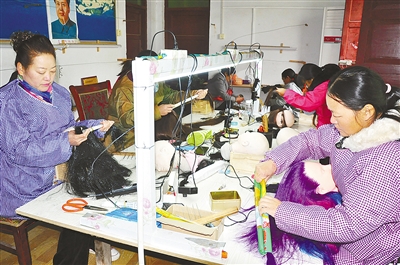 機(jī)會稍遜即逝。凍艷菊立即籌錢,買來塑膠頭皮、假發(fā)、機(jī)器等,并請來師傅教授了自己兩個多月,終于掌握了制作美發(fā)教習(xí)用具的全流程技術(shù)。凍艷菊又動員村里的幾家貧困戶姐妹,開始了創(chuàng)業(yè)脫貧之路。