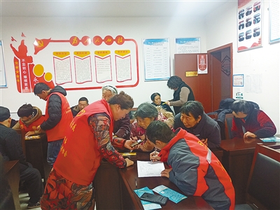 12月6日,漯河沙澧社工中心和市二院的志愿者走進郾城區(qū)龍塔街道華山社區(qū),為老人免費發(fā)放黃手環(huán)。