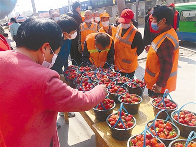 (記者 朱 紅 見習(xí)記者 黨夢琦)“新鮮的草莓,每位環(huán)衛(wèi)工可以免費(fèi)領(lǐng)一籃。”4月15日,在市區(qū)緯一路愛心粥屋門前,負(fù)責(zé)人高紅熱情地招呼著前來領(lǐng)取草莓的環(huán)衛(wèi)工。