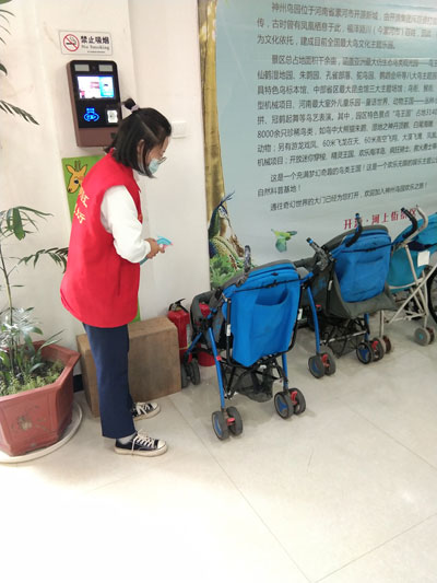 10月5日,市神州鳥園景區(qū)工作人員對景區(qū)公共物品進(jìn)行消毒,做好疫情防控,倡導(dǎo)文明旅游。