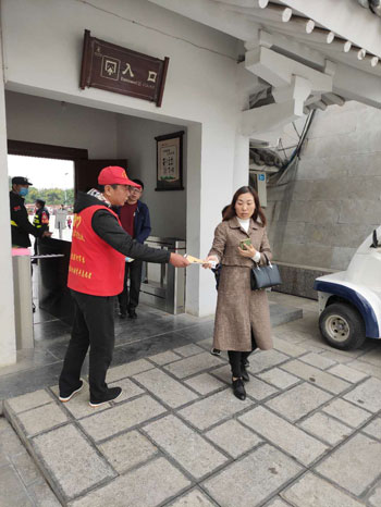 景區(qū)向游客發(fā)放文明旅游指南