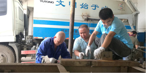 8月11日晚上21點(diǎn)左右,一通電話驚醒了正在熟睡的法兵兵,氣氛頓時(shí)緊張起來,他振作精神,收拾好工具直奔事故現(xiàn)場(chǎng),經(jīng)過2個(gè)多小時(shí)的搶修,清運(yùn)車輛成功脫困。法兵兵說“像這樣的事情幾乎每天都會(huì)發(fā)生,有時(shí)甚至搶修到夜里兩三點(diǎn),不管多晚我們也得立刻趕到,不能耽誤夜間清運(yùn)垃圾”。
