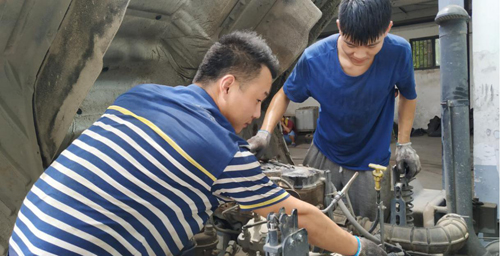 作為修理廠廠長,張長奇說“鉆地溝檢修車是維修工經(jīng)常性的工作,上蒸下烤,猶如鉆進(jìn)烤箱,一天的汗擰下來得有一盆,高溫天氣維修車輛對(duì)維修工身體素質(zhì)是一種嚴(yán)重的考驗(yàn),主要是怕中暑,有時(shí)溫度高達(dá)四十多度,身體素質(zhì)不好的就扛不住了。我們每天的衣服都是機(jī)油和汽油的混合物,也不覺得臟,習(xí)慣了,這活總要有人干”。