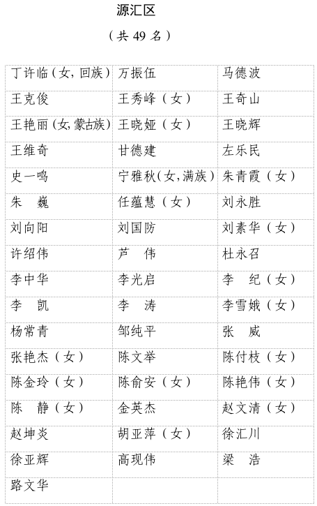 現(xiàn)將漯河市第八屆人民代表大會(huì)代表名單予以公布。