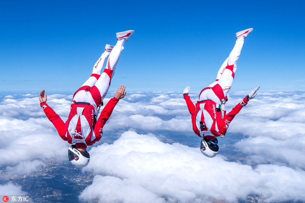 跳傘見多了,但是雙人跳傘,能這么玩的人卻沒幾個,Greg Crozier和Karine Jony就是這少之又少的大牛之二,他們在法國里昂上演了一出驚艷的高空雙人舞。