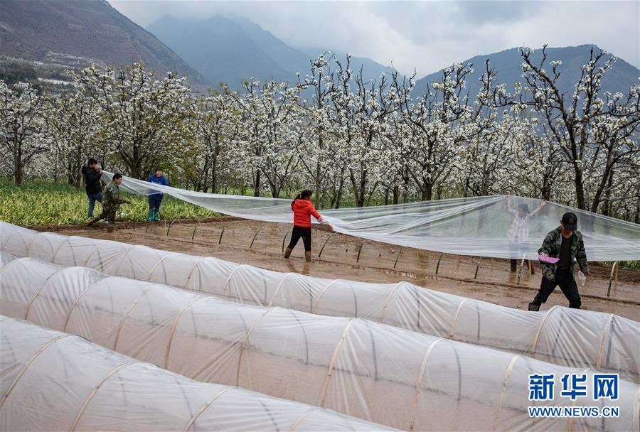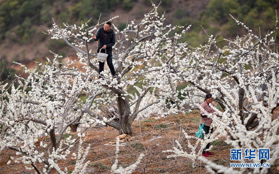 3月19日,漢源縣九襄鎮(zhèn)新堰村村民對梨花人工授粉。 隨著氣溫回升和春雨到來,四川省漢源縣九襄鎮(zhèn)等地的村民投入到疏花、人工授粉、育苗等農(nóng)業(yè)勞動中。 新華社記者 江宏景 攝