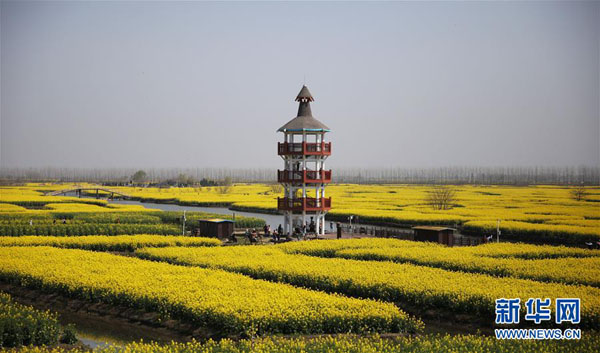 3月18日,游客在江蘇省興化市千垛景區(qū)拍照。 近日,正值江蘇省興化市千垛景區(qū)萬(wàn)畝油菜花盛開期,金燦燦的油菜花在水道圍成的垛田上形成一片片金黃色的“花海”,形成了“河有萬(wàn)灣多碧水,田無(wú)一垛不黃花”的壯觀景色。 新華社記者 李雨澤攝