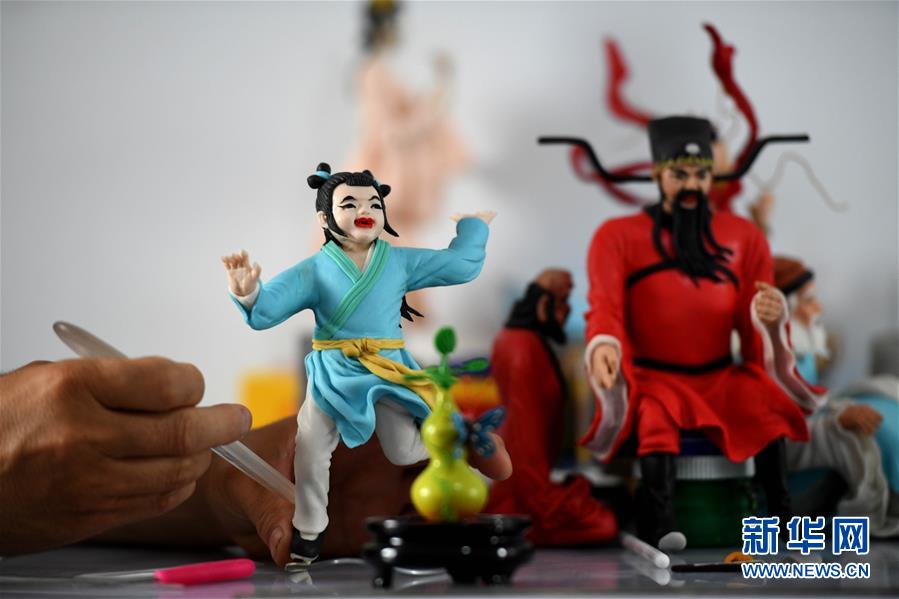 6月11日,在河北省石家莊市深澤縣職業(yè)技術(shù)教育中心,民間藝人王亮展示自己創(chuàng)作的面塑作品。 深澤面塑是當(dāng)?shù)赜忻拿耖g手工技藝,傳承歷史悠久。石家莊市深澤縣民間藝人王亮自幼酷愛手工,他專注面塑創(chuàng)作20多年,推出歷史神話人物、十二生肖、田園風(fēng)光等作品。近年來,王亮致力于傳承面塑民間技藝,將其帶到20多個國家和地區(qū)進行文化交流,讓更多人接觸、了解到中國傳統(tǒng)民間藝術(shù)。 新華社發(fā)(許建園 攝)