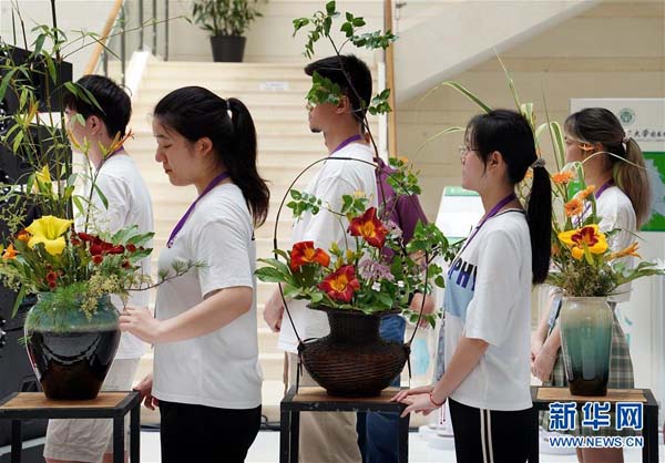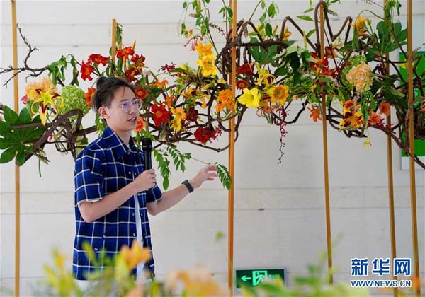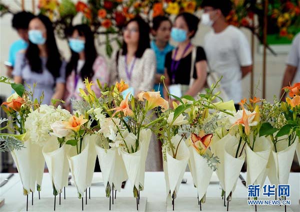 6月13日,上海應(yīng)用技術(shù)大學(xué)的學(xué)生們設(shè)計(jì)創(chuàng)作的萱草花藝作品即將在開幕式現(xiàn)場亮相。 當(dāng)日,“2020中國(上海)萱草文化節(jié)”在上海應(yīng)用技術(shù)大學(xué)開幕,校園里數(shù)百個品種的萱草花競相綻放,萱草科研推廣、萱草文化交流等多項(xiàng)活動同時(shí)舉行。 新華社記者劉穎攝