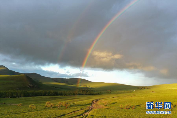 阿魯科爾沁草原上的彩虹(無(wú)人機(jī)照片)。