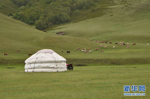 近日,內(nèi)蒙古自治區(qū)赤峰市的阿魯科爾沁草原開始返青。牧群和潔白的蒙古包散落在嫩綠的草原上,景色宜人。 新華社記者 劉磊 攝