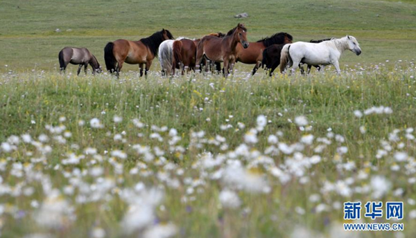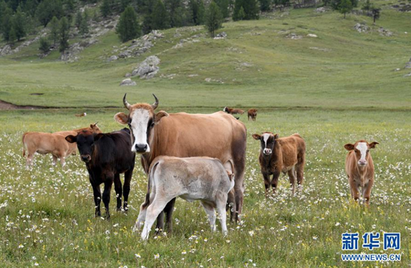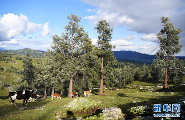 這是6月21日拍攝的新疆阿勒泰地區(qū)哈巴河縣的牧場風(fēng)光。 夏日時節(jié),新疆哈巴河縣薩爾布拉克鎮(zhèn)高山牧場水草豐茂,風(fēng)景如畫。 新華社記者 沙達(dá)提 攝