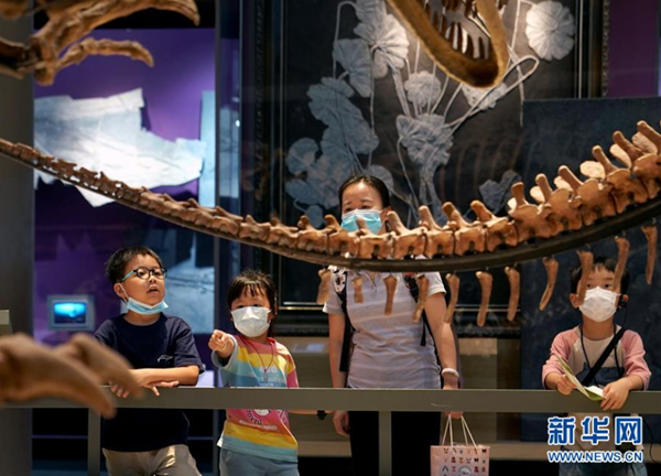 7月15日,觀眾在上海自然博物館參觀。 進(jìn)入暑假,不少家長(zhǎng)帶著孩子到上海自然博物館參觀。該展館采取實(shí)名制分時(shí)段購(gòu)票參觀、參觀人數(shù)分時(shí)限流、發(fā)布次日參觀人數(shù)預(yù)測(cè)等舉措,加強(qiáng)防疫常態(tài)化管理。 新華社記者 劉穎 攝