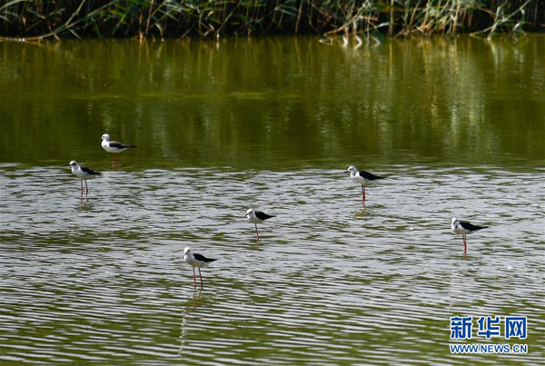 7月23日,黑翅長(zhǎng)腳鷸在天津大黃堡濕地自然保護(hù)區(qū)內(nèi)覓食。新華社發(fā)(孫凡越 攝)