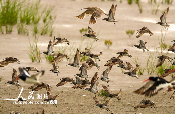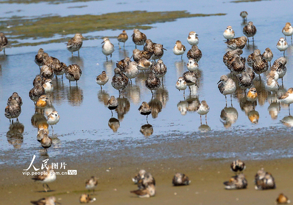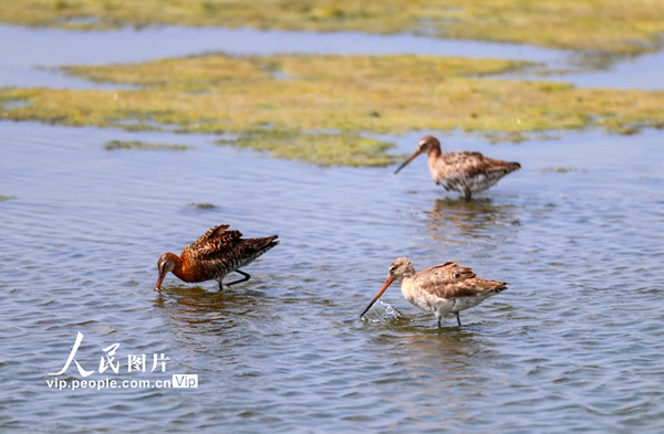 近年來,世界自然遺產(chǎn)地江蘇省鹽城市東臺條子泥濕地,不斷加大濕地修復、退漁還濕力度,為遷徙的水鳥提供更多的棲息覓食場所。近日,大批白腰杓鷸、大濱鷸、斑尾塍鷸、黑尾塍鷸、半蹼鷸、黑腹濱鷸、紅頸濱鷸、環(huán)頸鴴、蒙古沙鴴等鴴鷸類南遷候鳥在修復的高潮位棲息地停歇,取得了良好的生態(tài)效益。孫家錄/人民圖片
