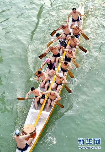 8月6日,人們?cè)诤笔⌒骺h城貢水河上用劃龍舟的方式進(jìn)行晨練。 湖北省恩施土家族苗族自治州宣恩縣在穿城而過的貢水河兩岸設(shè)立了親水步道、游泳戲水、劃船健身、休閑納涼等區(qū)域,并建設(shè)更衣室、休閑座椅、公共直飲水等基礎(chǔ)設(shè)施,方便人們共享貢水河帶來的夏日清涼。 新華社發(fā)(宋文 攝)