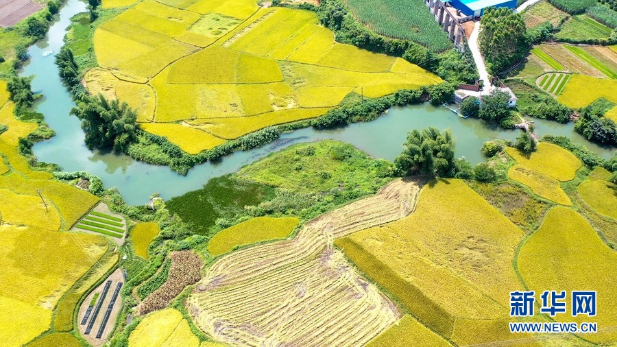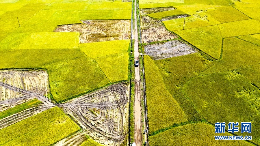 成片的早稻在陽光下金光燦燦。(無人機(jī)拍攝)