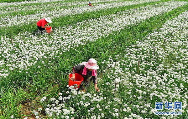 8月29日,山東省淄博市沂源縣悅莊鎮(zhèn)黃山子村的農(nóng)民在田間采摘韭菜花。 初秋時(shí)節(jié),山東省淄博市沂源縣農(nóng)民種植的萬(wàn)畝韭菜迎來(lái)盛花期,當(dāng)?shù)剞r(nóng)民加緊采摘韭菜花銷往各地。近年來(lái),無(wú)公害韭菜種植成為當(dāng)?shù)剞r(nóng)民增收致富的特色產(chǎn)業(yè)之一。 新華社發(fā)(趙東山 攝)
