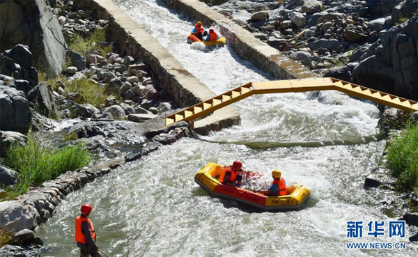 9月16日,在石家莊市贊皇縣的嶂石巖景區(qū),游客體驗(yàn)漂流。 隨著文化與旅游不斷深入融合,河北省石家莊市贊皇縣以當(dāng)?shù)匚幕厣珵橹危钊胪诰蜇S富的文化資源和歷史底蘊(yùn),將非遺民俗表演、實(shí)景劇演出等融入景區(qū)的規(guī)劃設(shè)計(jì)、建設(shè)、環(huán)境場(chǎng)景提升中,提升游客的參與度和體驗(yàn)感。 新華社發(fā)(張曉峰 攝)