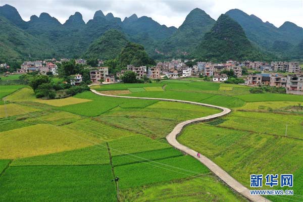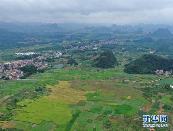 廣西平樂縣張家鎮(zhèn)在穩(wěn)定水稻播種面積的同時(shí),積極推廣優(yōu)質(zhì)高產(chǎn)水稻新品種。時(shí)下,正值該鎮(zhèn)晚稻抽穗揚(yáng)花時(shí)節(jié),田園一派美麗景象。 新華社記者 周華 攝